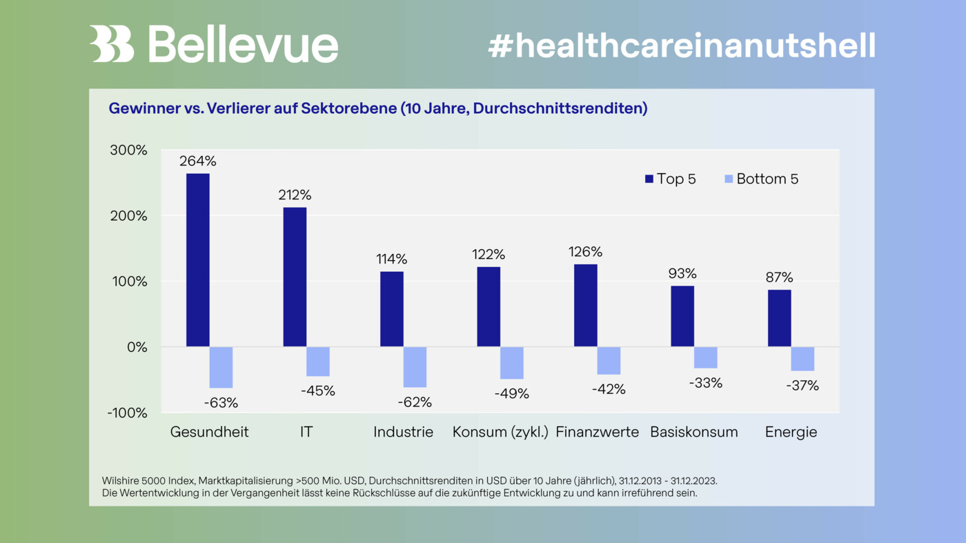 Im Vergleich zu anderen Branchen weist Healthcare die grösste Rendite-Bandbreite («Disparity») zwischen Gewinnern und Verlierern auf. Diese Dynamik bietet eine ideale Ausgangslage für aktives Portfolio Management.