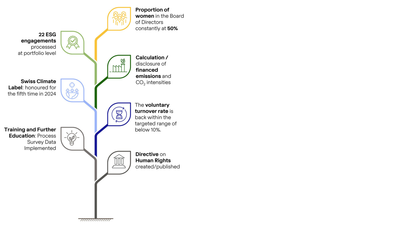 To secure the success of our company over the long term and at the same time create value for all stakeholders, we have embedded our 2030 sustainability goals into Bellevue Group’s business strategy.