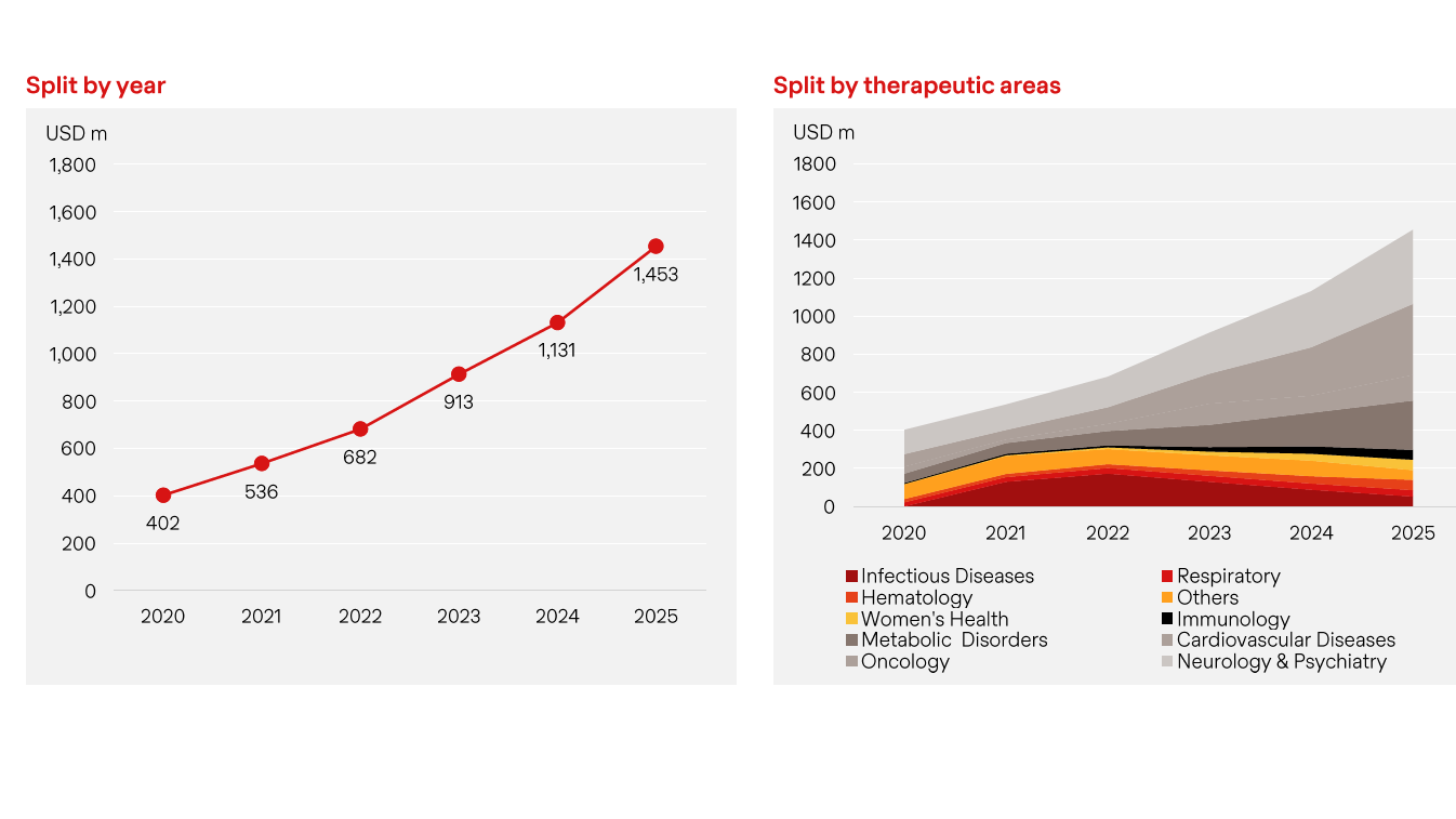 We expect BB Biotech's investment portfolio to reap above average benefits from this activity, with portfolio companies estimated to more than double their annual sales over the next three years. The lion’s share of product approvals are in cancer, metabolic and neurological diseases (Charts 1 and 2). Our portfolio companies Alnylam and Ionis are each anticipating an approval decision in 2022 on a therapy to reduce the symptoms of hATTR amyloidosis, an inherited disorder that causes proteins to accumulate and seriously damage body organs. There are currently no effective treatments for the condition and pricing power is high as a result.