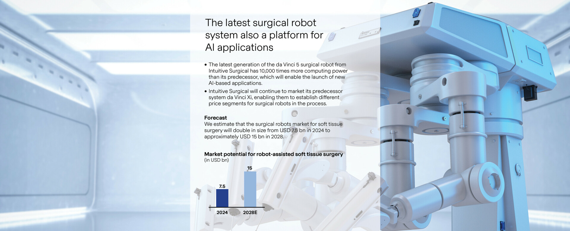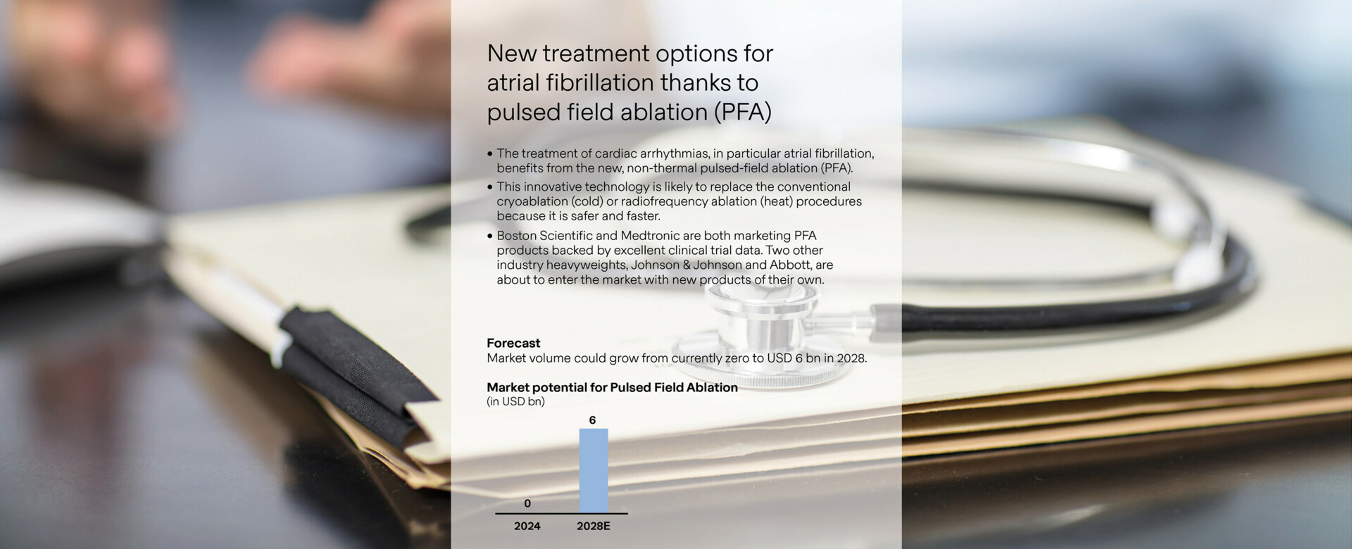 Modern medicine is inconceivable and impracticable without technical devices and support services. Medical technology not only improves diagnostics, it also enables better treatment outcomes, patient care and rehabilitation therapy. In short, it has a significant impact on patient quality of life and is driving efficiency and cost savings throughout the healthcare system on top of that. This sector is also supported by the high growth potential among healthcare services, the growing volume of treatments, the trend towards digitalization and AI as well as solid premiums among health insurers.