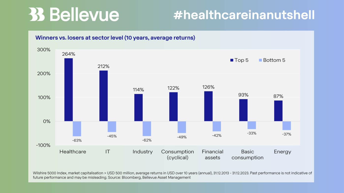 Compared to other sectors, healthcare exhibits the widest return disparity between winners and losers. This scenario presents an ideal setting for active portfolio management within the healthcare industry.